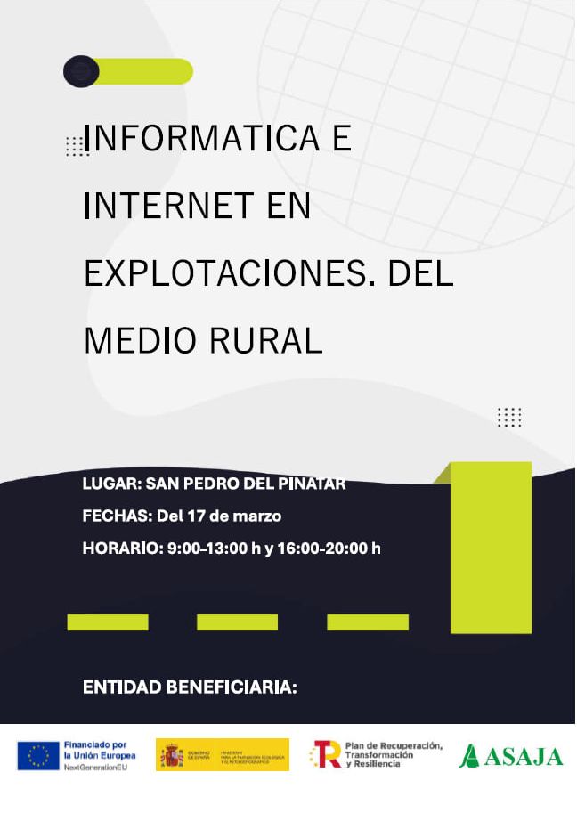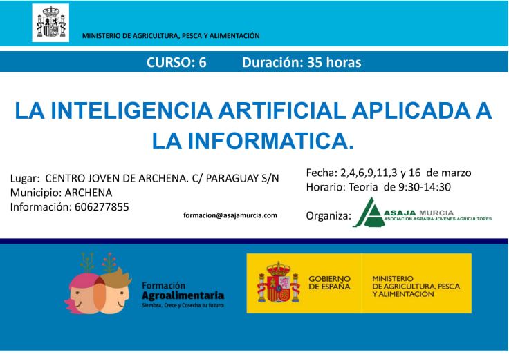 ASAJA va impartir un curso de informática enmarcados en la Orden para el año 2024, dentro a programas plurirregionales de formación dirigidos a los profesionales del medio rural del Ministerio de Agricultura Pesca y Alimentación.