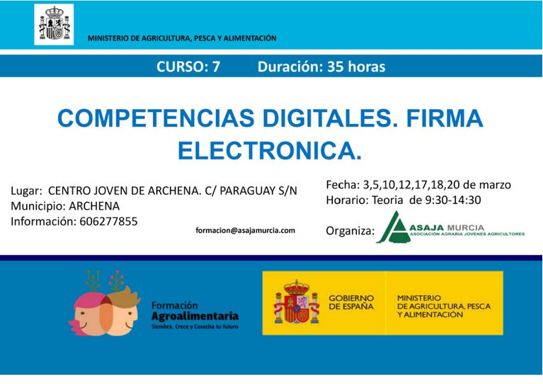 ASAJA organiza este curso sobre creación de páginas web, en el municipio de Alguazas ( Murcia ) dentro del programa de formación e información en el medio rural del Ministerio de Agricultura, Pesca y Alimentación. Duración 25 horas, del 22 al 26 de abril de 2024.