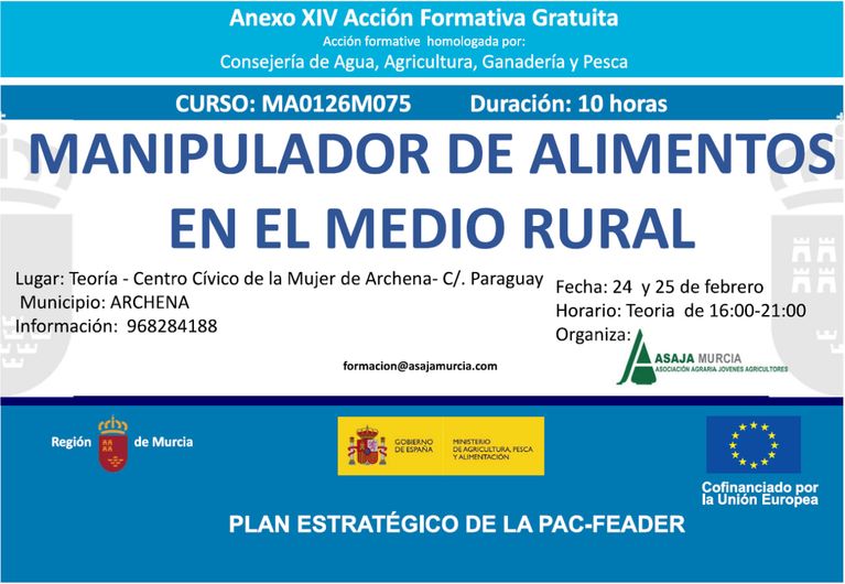 CURSO DE MANIPULADOR DE ALIMENTOS EN EL MEDIO RURAL. SANGONERA LA SECA. (MURCIA)