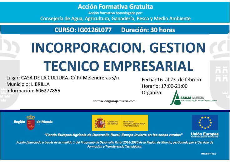 CURSO DE INCORPORACIÓN. GESTIÓN TÉCNICO EMPRESARIAL.ALHAMA DE MURCIA.