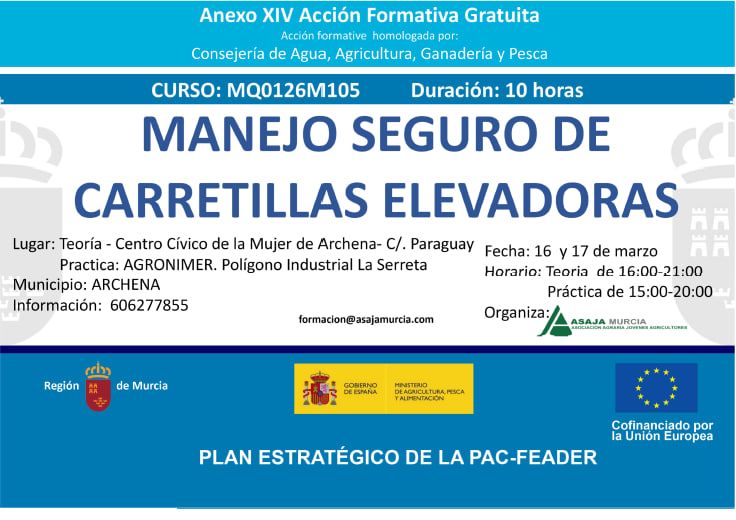 ASAJA va impartir un curso de manejo seguro de Carretillas elevadoras en Cartagena.